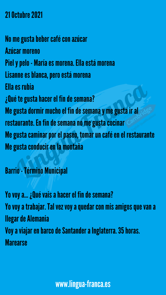 Spanish Coffee 21 Oct. Posted byLingua FrancaOctober 21, 2021Posted inSpanish Club, Spanish Coffee Parejas de Verbos AQUÍ