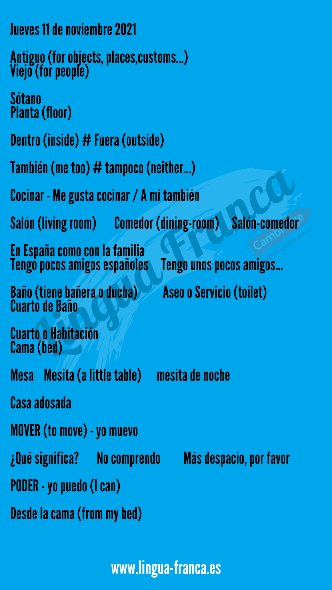 Spanish Coffee 11 Noviembre 2021 Posted byLingua FrancaNovember 11, 2021Posted inSpanish Club, Spanish Coffee Lección: MI CASA