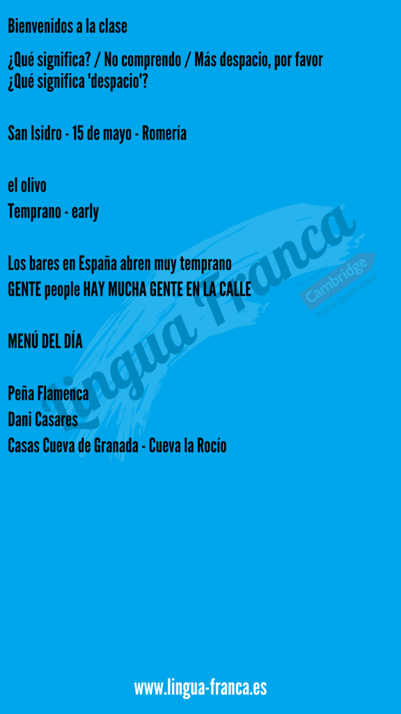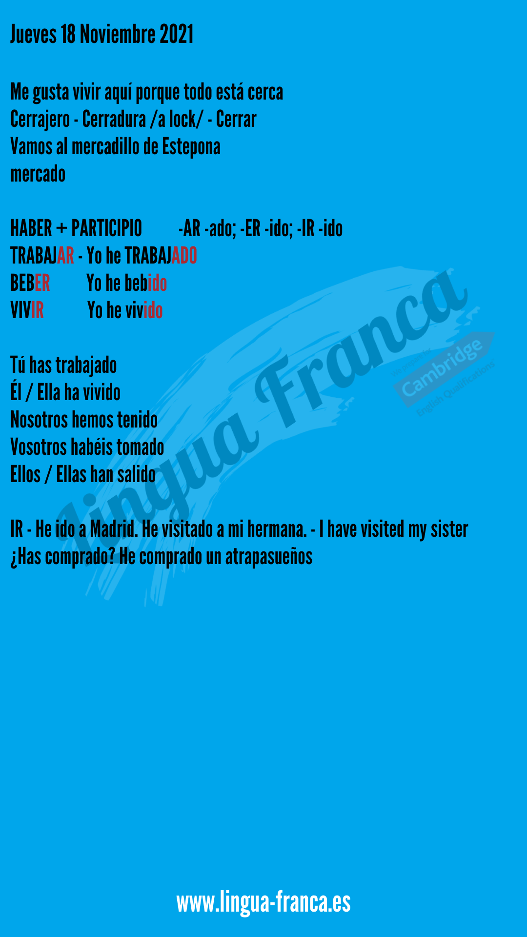 Spanish Coffee. 18 de Noviembre 2021 Posted byLingua FrancaNovember 18, 2021Posted inSpanish Club, Spanish Coffee CLASE 1 Lección AQUÍ. CLASE 2 Lección AQUÍ.