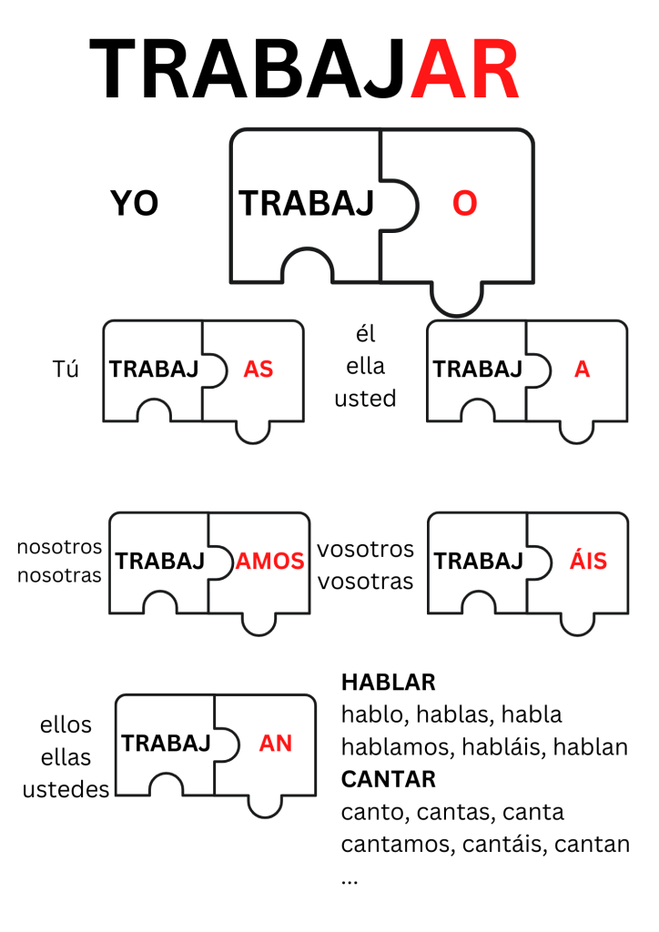 In order to study verb conjugation, you can follow an easy system you can handcraft with post it notes and change the endings