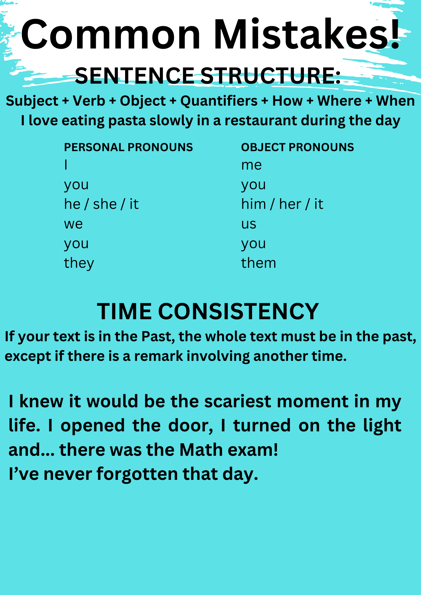 Don’t show off, always keep it simple to avoid mistakes. Once finished, in an essay for example, try to make it better when you revise. - Always revise! if time allows…