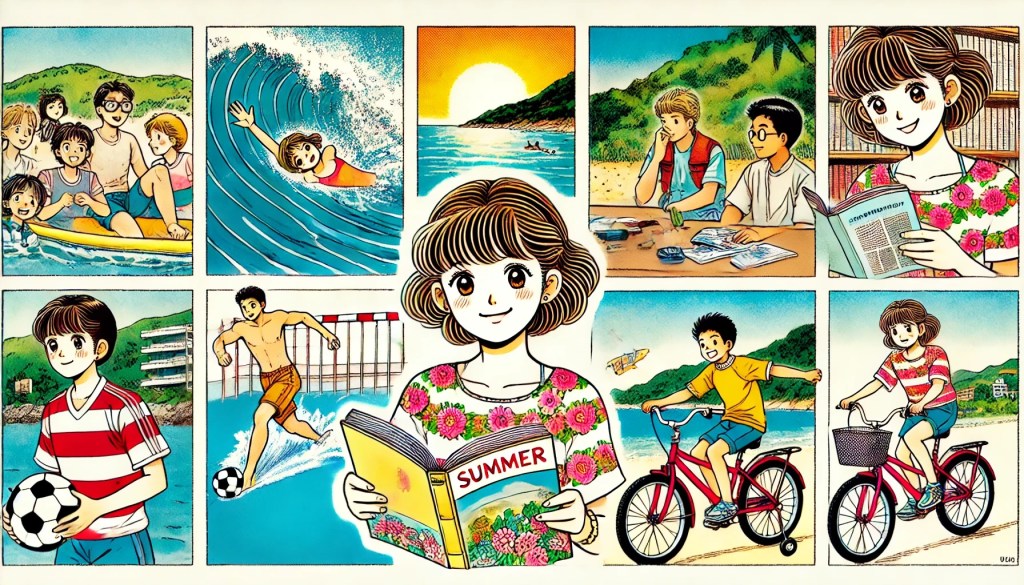 Every summer, I swim in the sea and play with my friends. This summer, I went to the beach every day. I liked swimming, but I didn’t like the hot sun. Sometimes, I read books or ride my bike.