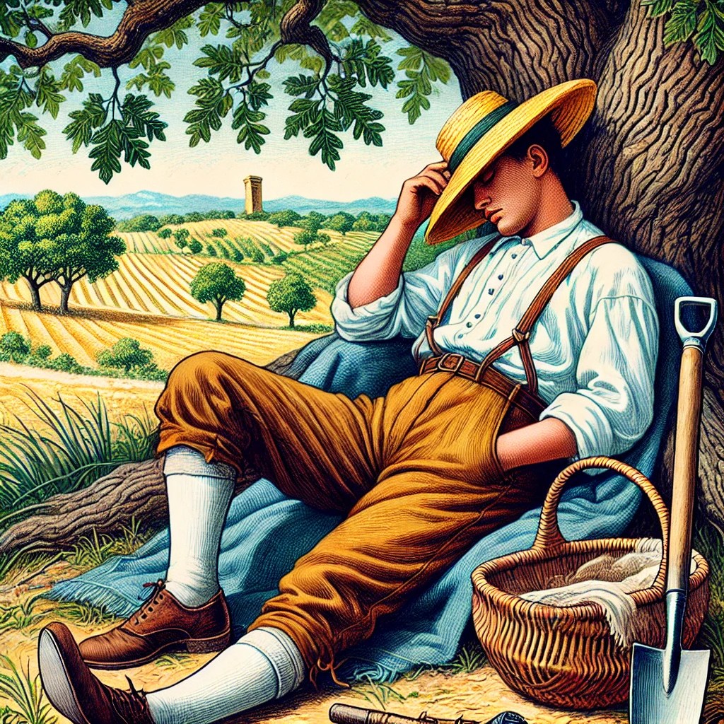 Hace mucho tiempo, los campesinos trabajaban bajo el sol en los campos. En verano, el calor era tan fuerte que no podían trabajar durante las horas más calurosas del día. Por eso, descansaban después de comer. Ellos se tumbaban bajo los árboles o en sus casas y dormían un poco. Así nació la costumbre de la siesta.
