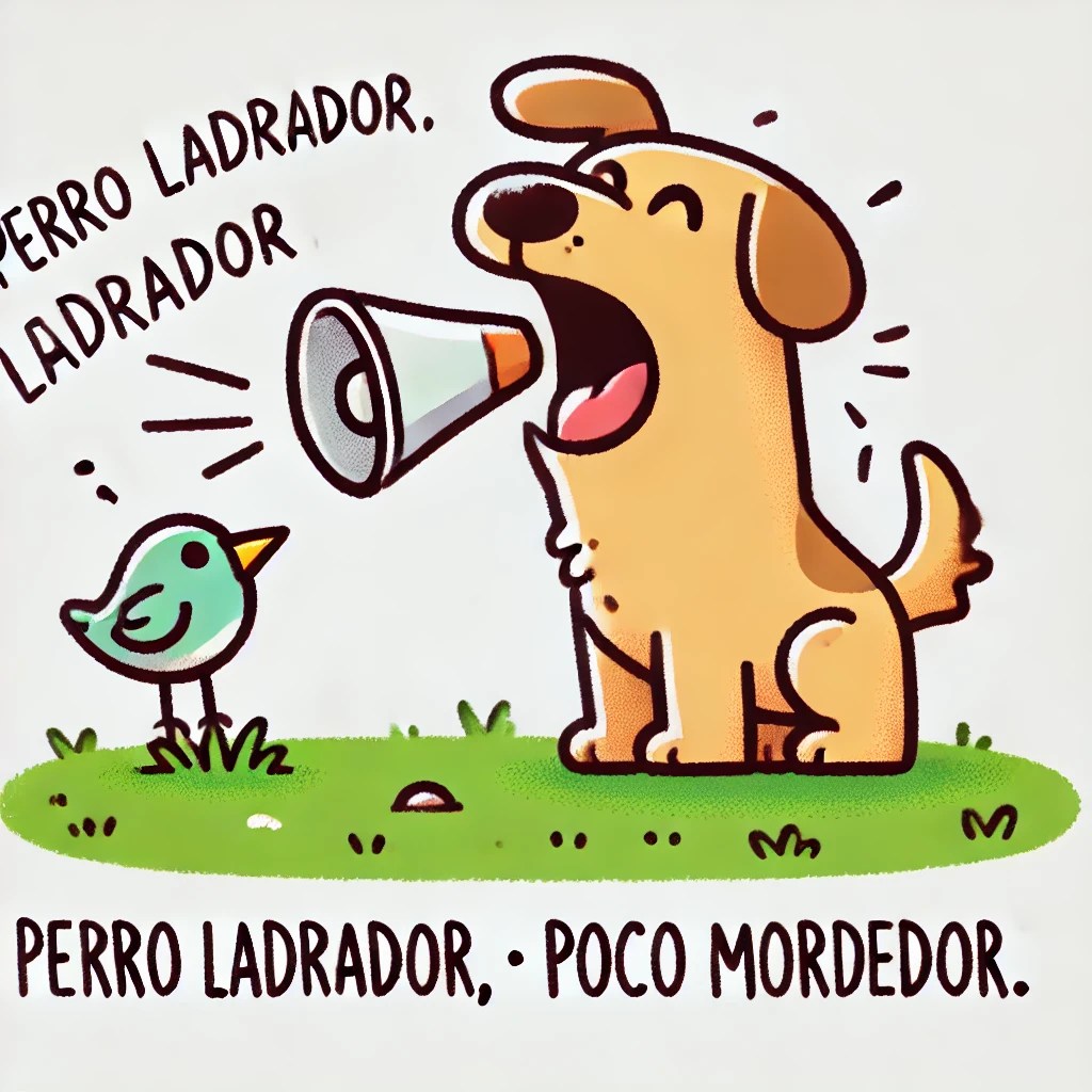 Ejemplo: “Dijo que se iba a enfadar mucho, pero al final no hizo nada. Perro ladrador, poco mordedor.” - “Cuando el rio suena, agua lleva.”