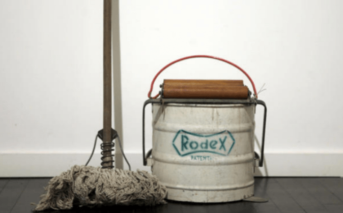 En 1950 (mil novecientos cincuenta), Manuel Jalón inventa la fregona. Antes, las personas limpian el suelo con las manos y un trapo. Con la fregona, todo es más fácil y limpio.