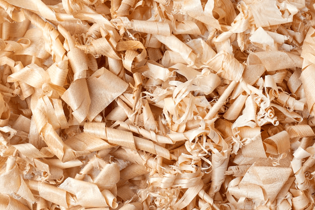 Aserrín. Restos de madera que encontramos en las carpinterías en el suelo.