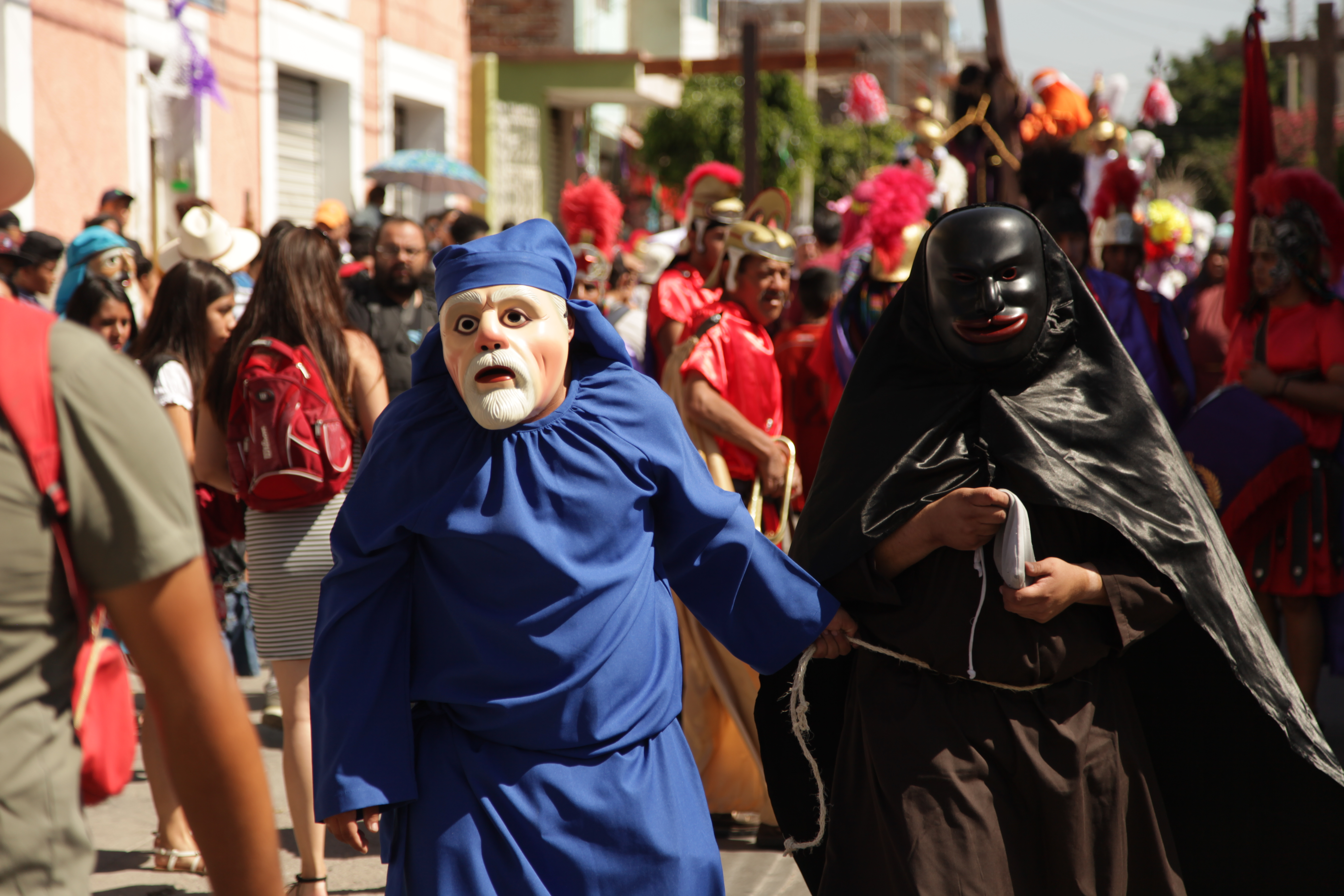 En el norte de Perú, durante generaciones, se ha celebrado la Semana Santa con bailes y máscaras. Algunos personajes representan el bien, otros el mal, y se enfrentan en las plazas. Aunque la Iglesia intentó suprimir estas costumbres en el pasado, muchas comunidades han seguido practicándolas.