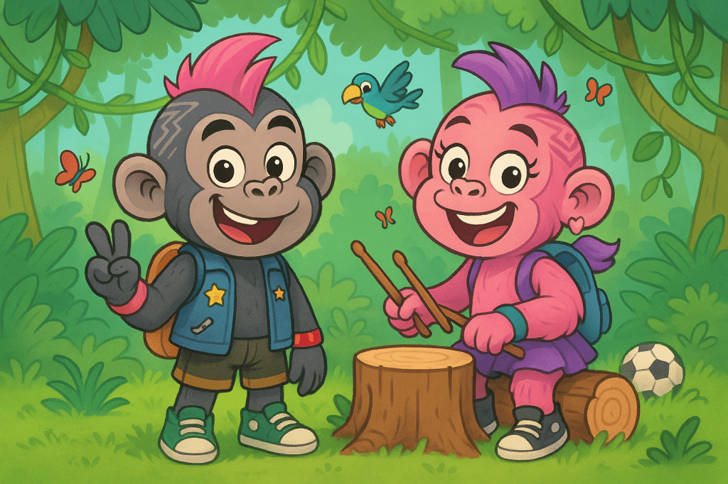 My best friend is Mina, a pretty pink gorilla. She loves music and plays drums on tree trunks. She doesn’t sleep late—she catches the first sunbeam.