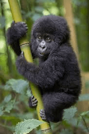 Mothers carry babies on their backs. Young gorillas play and tumble in the grass. Each night they build a new nest from branches, so they don’t sleep in the same nest twice.