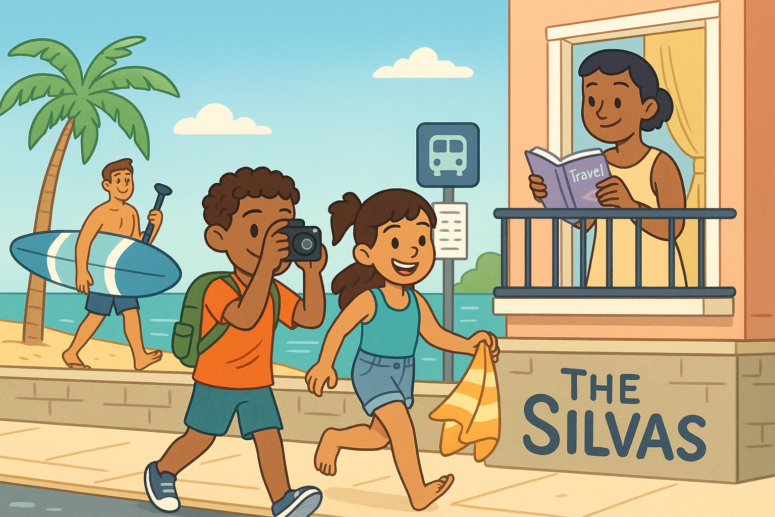 Tomorrow; the island bus leaves at 9.15, so they are meeting a guide at the harbour at ten. On Friday the aquarium opens at nine, but they aren’t going early; they are having a slow morning. In the evenings they walk along the beach and listen to street musicians. Holidays don’t follow their normal timetable, and that’s the best part—everyone is relaxing, laughing, and making new memories together.