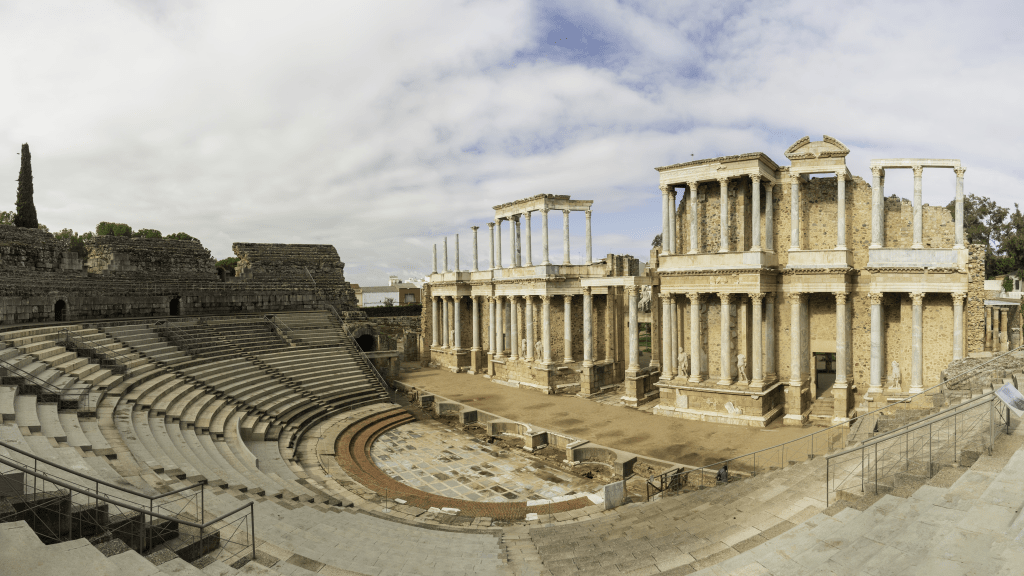 Mientras conducía, veía campos secos y, de pronto, me llamó mi compañía de teléfono: la señal era buena. Paré en Mérida y caminé un poco. Mérida nació como Augusta Emerita en el 25 a. C. y fue capital de la provincia romana de Lusitania; aún conserva teatro y otros restos famosos.