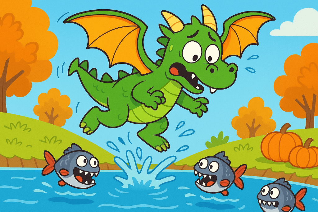 Milo the dragon has got big wings. He can fly, but he can’t swim. He likes flying and drawing.