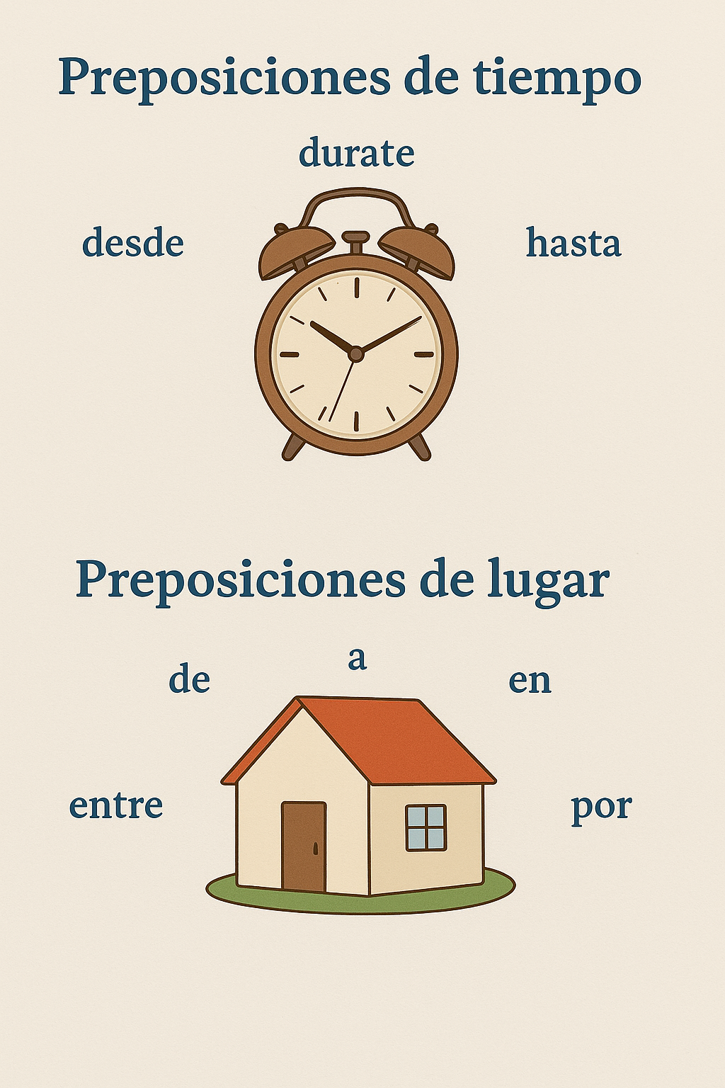 | Preposición | Uso principal | Ejemplo del texto o adaptado |
