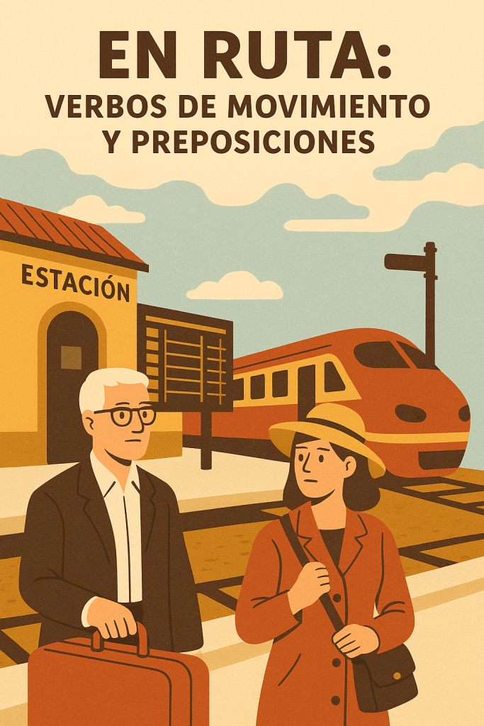 Preposiciones objetivo: a, de, en, por, hacia, hasta, desde. Verbos frecuentes: ir a, llegar a, salir de, venir de, pasar por, volver a, entrar en, subir a, bajar de, cruzar (por/ø), caminar hacia.