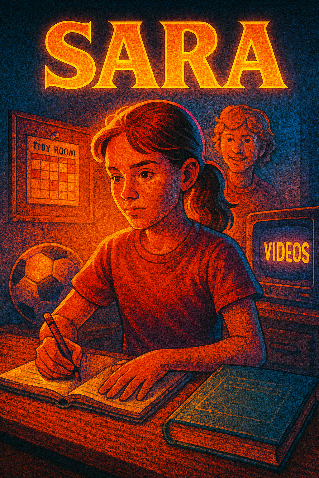 Sara is sporty too. She usually plays football with her cousin once a week. She tidies her room every Saturday. She sometimes watches videos three times a week. She always does homework first and she never plays before bed.