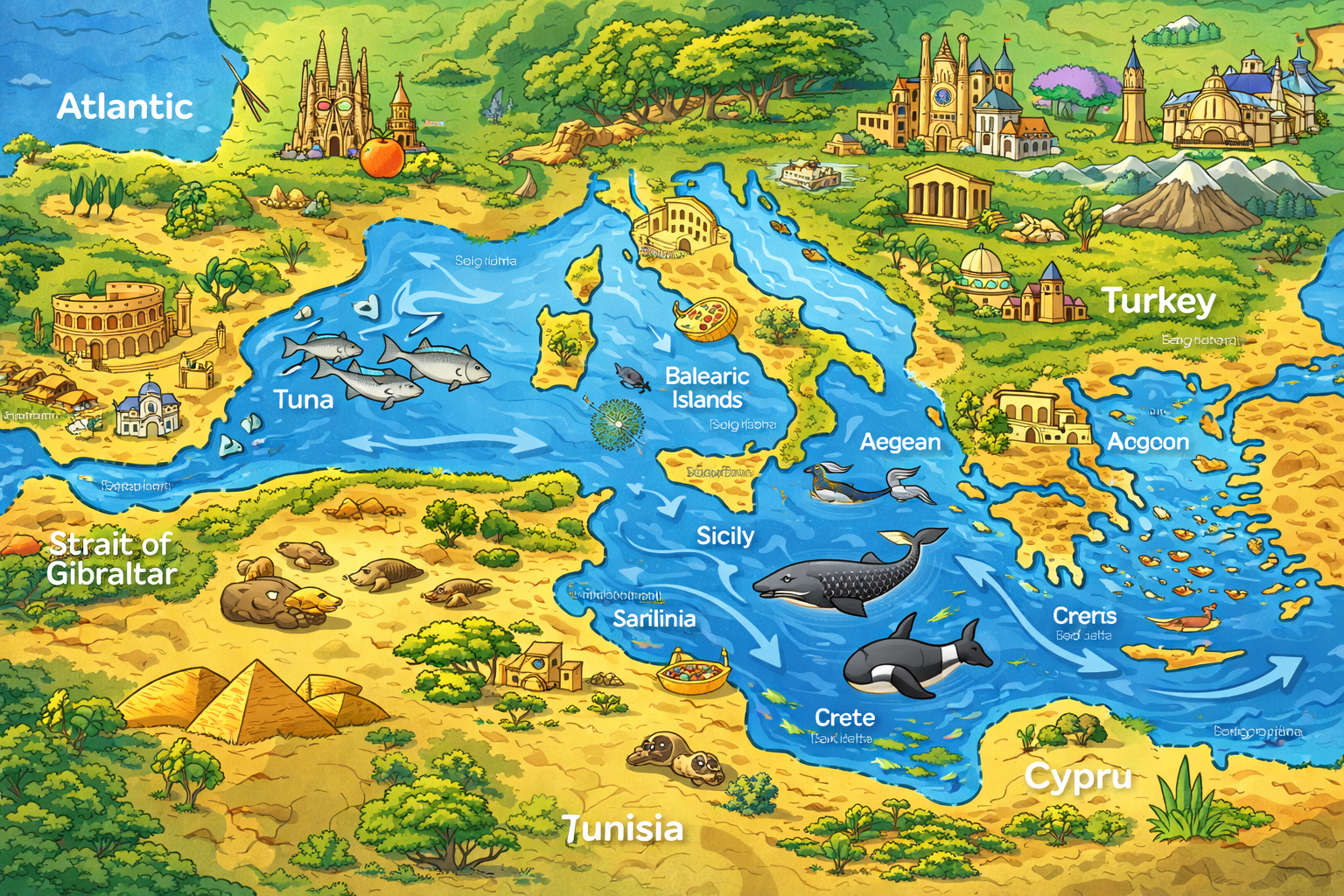 The Mediterranean is our home sea. It is small, warm, and busy. Many people swim, fish, and travel here. Because of this, the sea needs extra care.