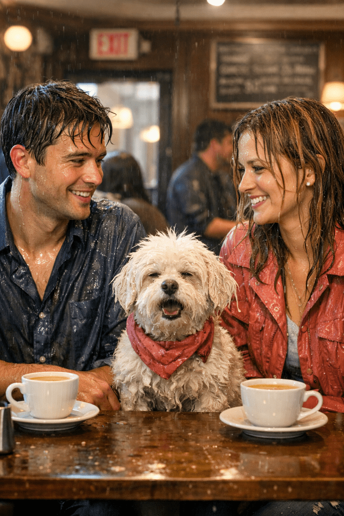 Los dos corren al mismo sitio: una cafetería pequeña. Entran mojados, con cara de tragedia, y se miran. Juan se ríe y María también. Juan dice que hoy no es un buen día para una cita. María dice que hoy no es un buen día para un concurso de belleza. Luna estornuda. Y los tres piden un café