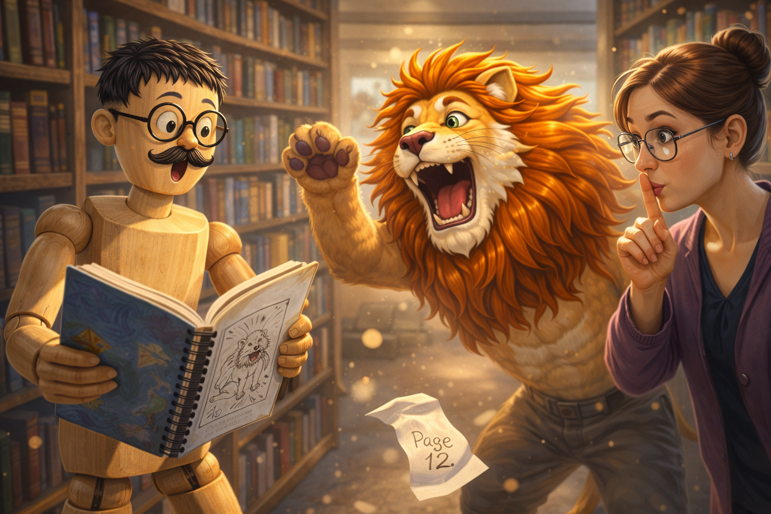 The librarian appeared and shushed them with a smile.