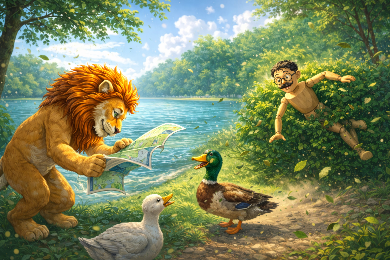 Leo caught the map and bowed to the duck.