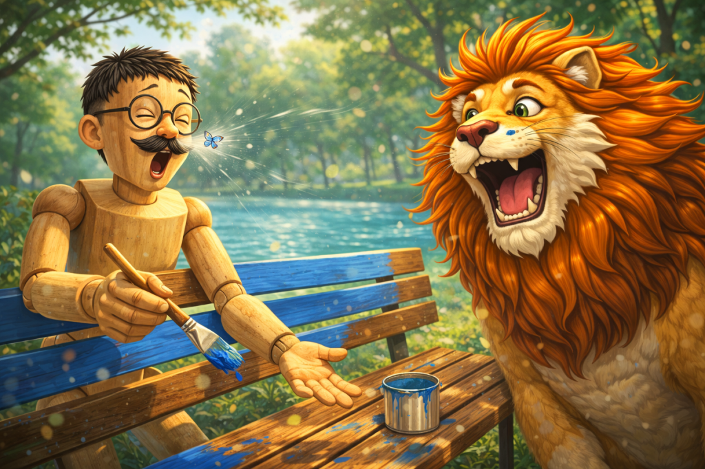 He sneezed, and a dot of paint spotted Leo’s whisker.