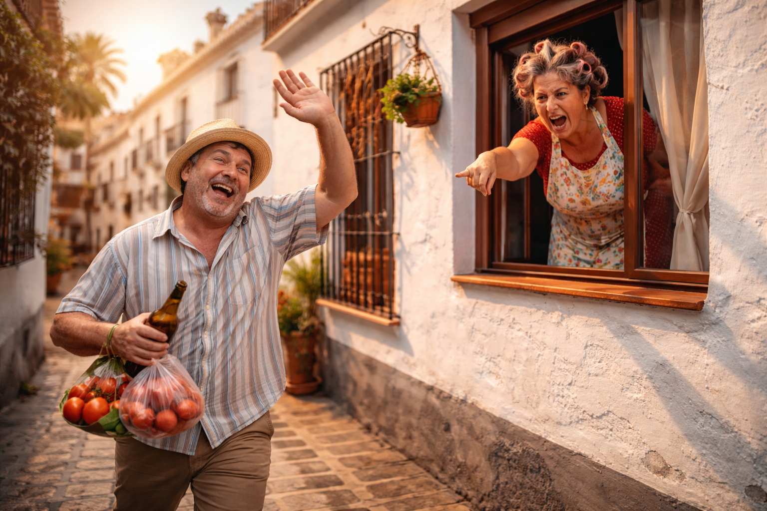 —Juan, escúchame. Vuelve ahora mismo a la tienda y trae tomates. Y esta vez: no pases por el bar, no hables con nadie y no te inventes excusas.