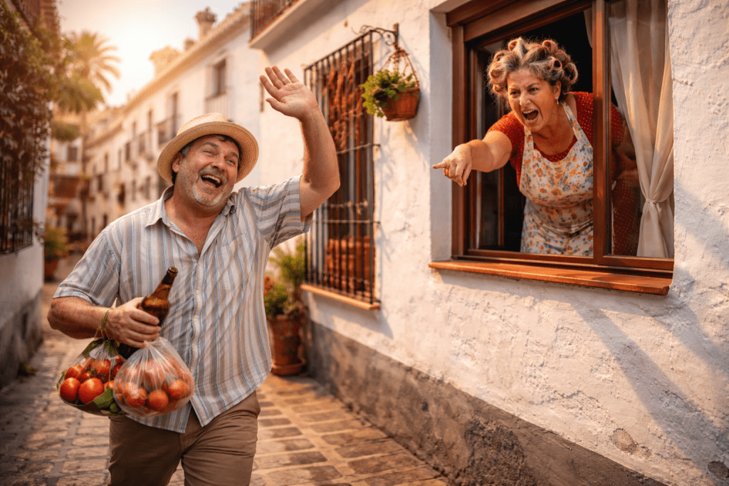 —Juan, ve a la tienda y trae tomates para el gazpacho. Y escucha bien: no pares en el bar y no bebas vino.