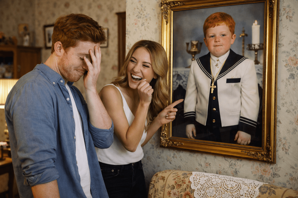 En España eso es muy típico. Vas a casa de un amigo, de una amiga o de un primo y, tarde o temprano, alguien encuentra la foto de la comunión. A veces está en un marco precioso en medio del salón, como si fuera una obra de arte. Y claro, la broma es automática. Todos nos reímos un poco, porque casi todos tenemos una foto parecida.
