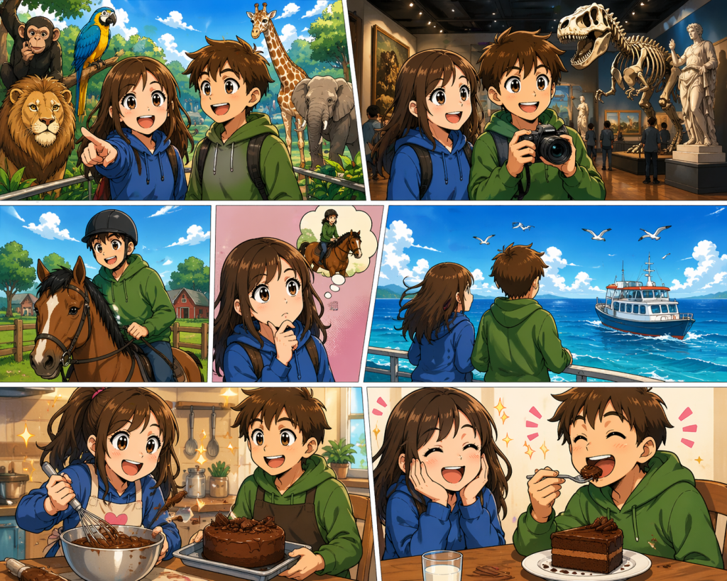 Lina and her brother Sam have done many new things this year. Lina has been to the zoo with her class, and she has seen monkeys, lions, and big birds. She has also been to a museum with her family. Sam has taken photos there. Lina has never ridden a horse, but Sam has ridden one at a farm. They have both seen the sea, but they have never gone on a boat. At home, Lina has made a chocolate cake, and Sam has eaten three pieces. They have had a very exciting year.